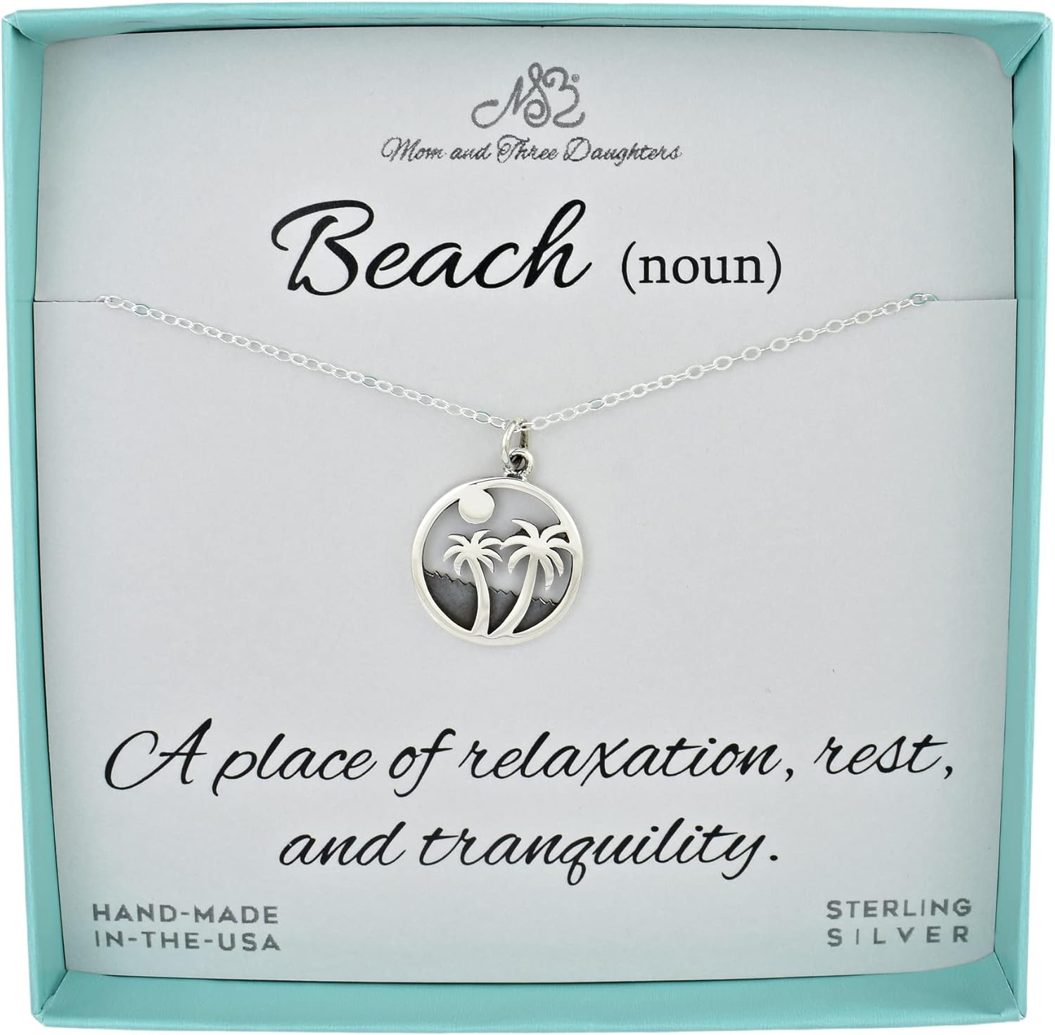 MOM & THREE DAUGHTERS Palm Tree Necklace in Sterling Silver. Beach Lover Gifts. Ocean Jewelry. Vacation Gifts.