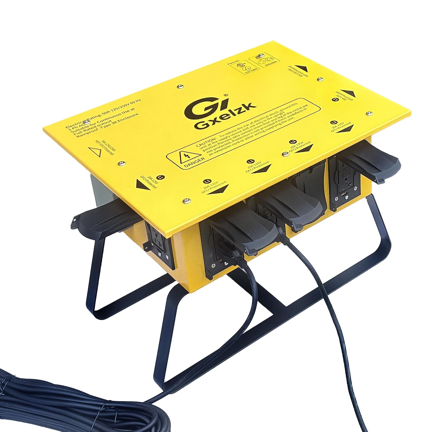 Temporary Distribution Box, It has Both 50A and 30A inlets, six 120V CFGI duplexes, one L14-30R Outlet, one L6-30R, and one TT-30R,Safe and Reliable Power on Any Construction site (Yellow)
