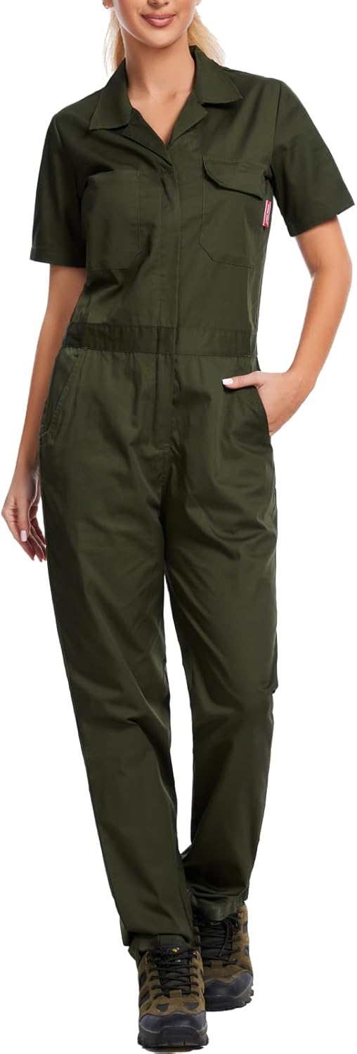 WORK IDEA Women's Short Sleeve Coverall Lightweight Snap-Front Cotton Work Jumpsuit