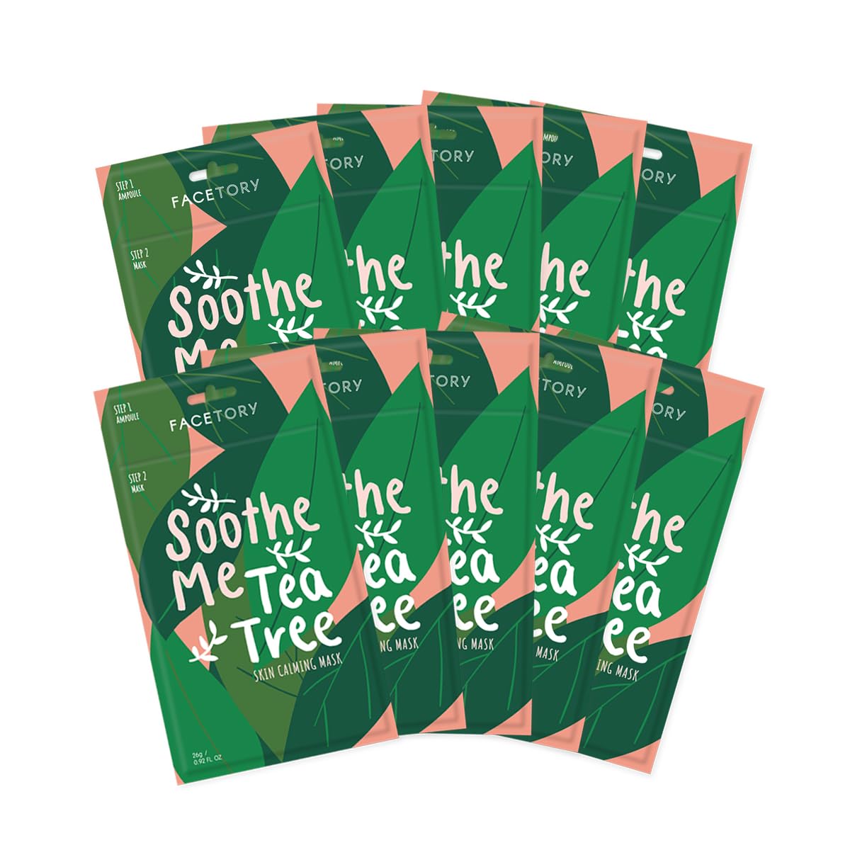 FACETORY K Beauty Face Mask Skin Care - Soothe Me Tea Tree 2-Step Sheet Mask with Tea Tree Extract & Chamomile + Soothing Ampoule | Skin Calming, Acne Clearing (10 Pack)