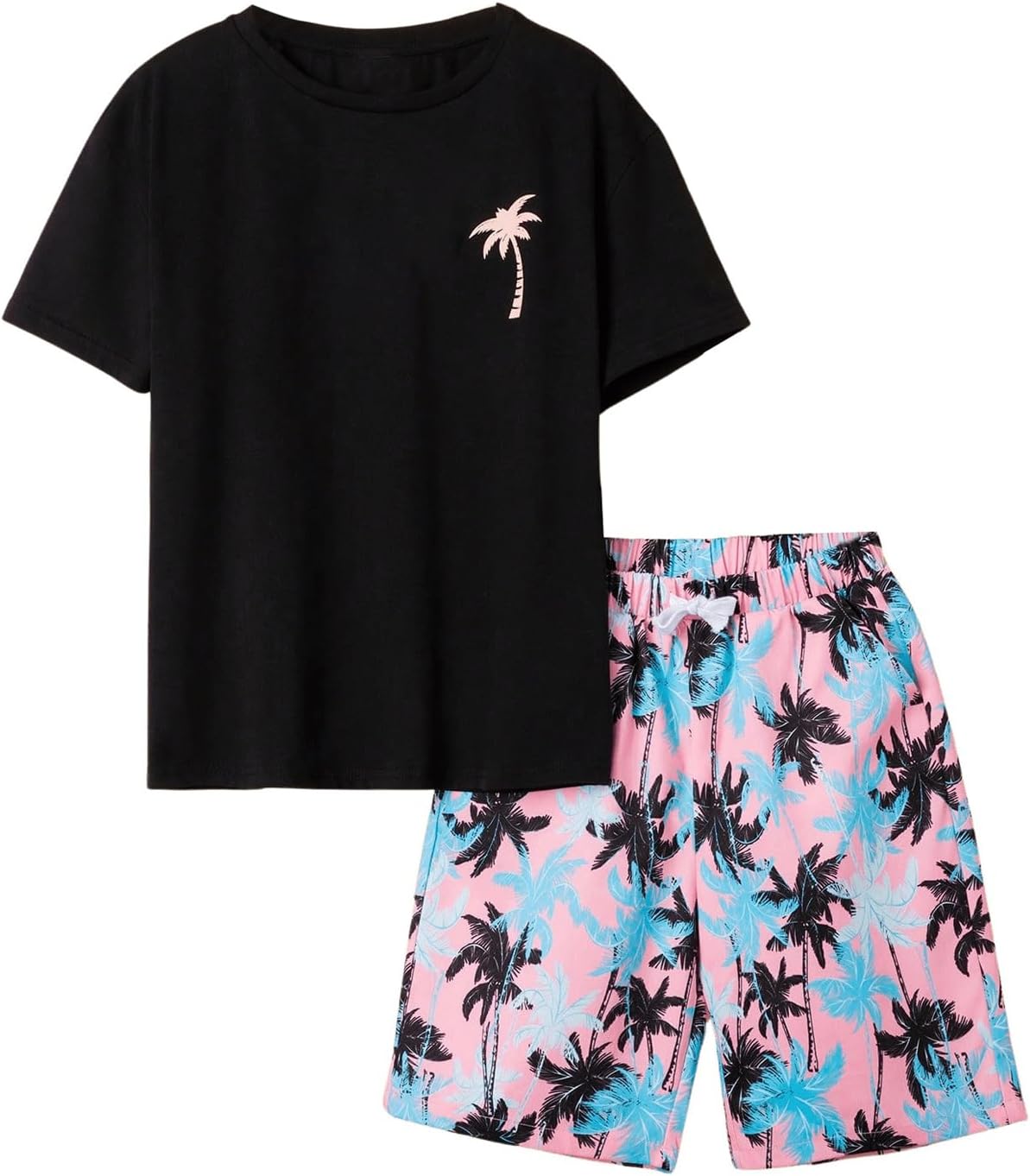 Boy's 2 Piece Outfits Letter and Tropical Graphic Print Short Sleeve Crewneck Tee and Shorts