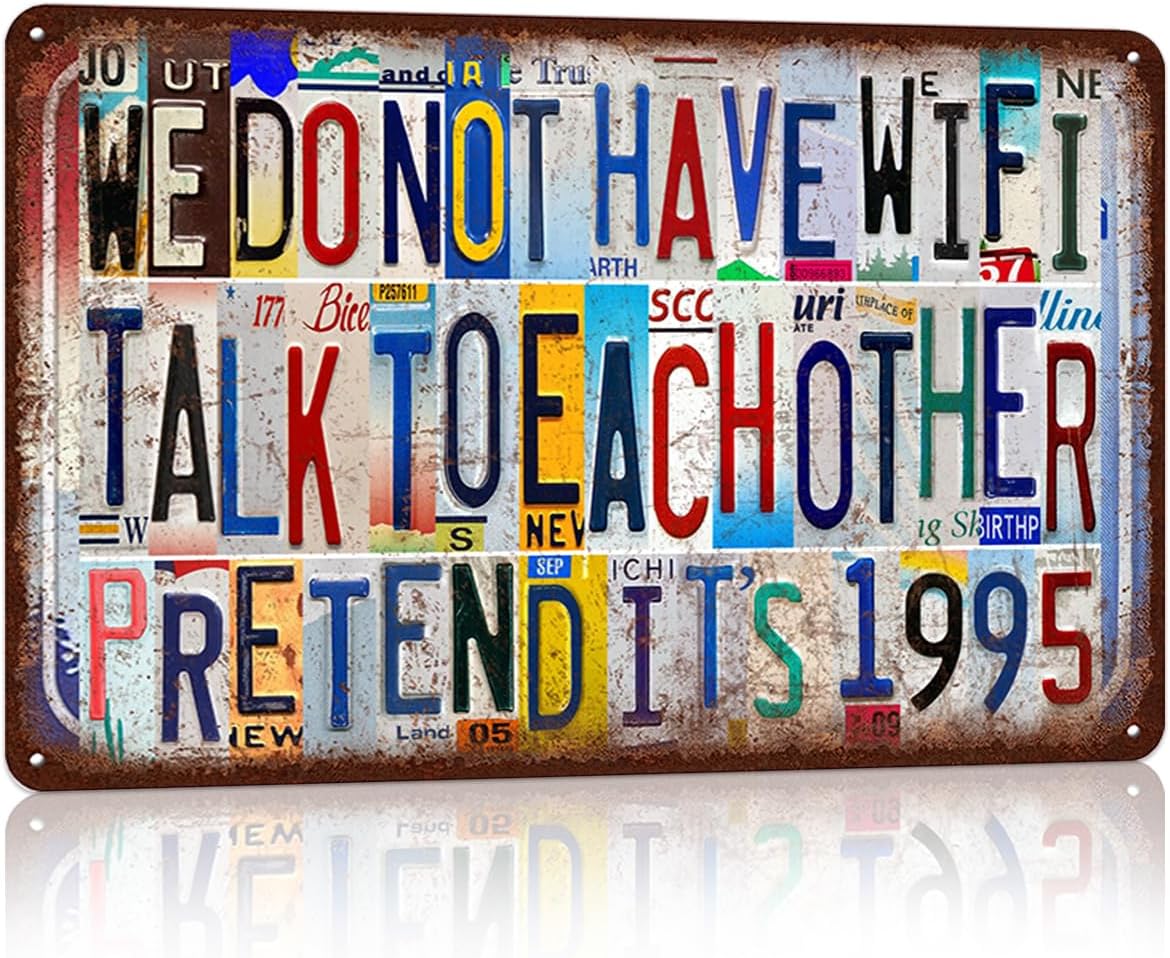 Vintage Metal Tin Signs Wall Decor for Man Cave Garage Bar Home 12 x 8 Inches - We Do Not Have Wifi Talk To Each Other Pretend It's 1995