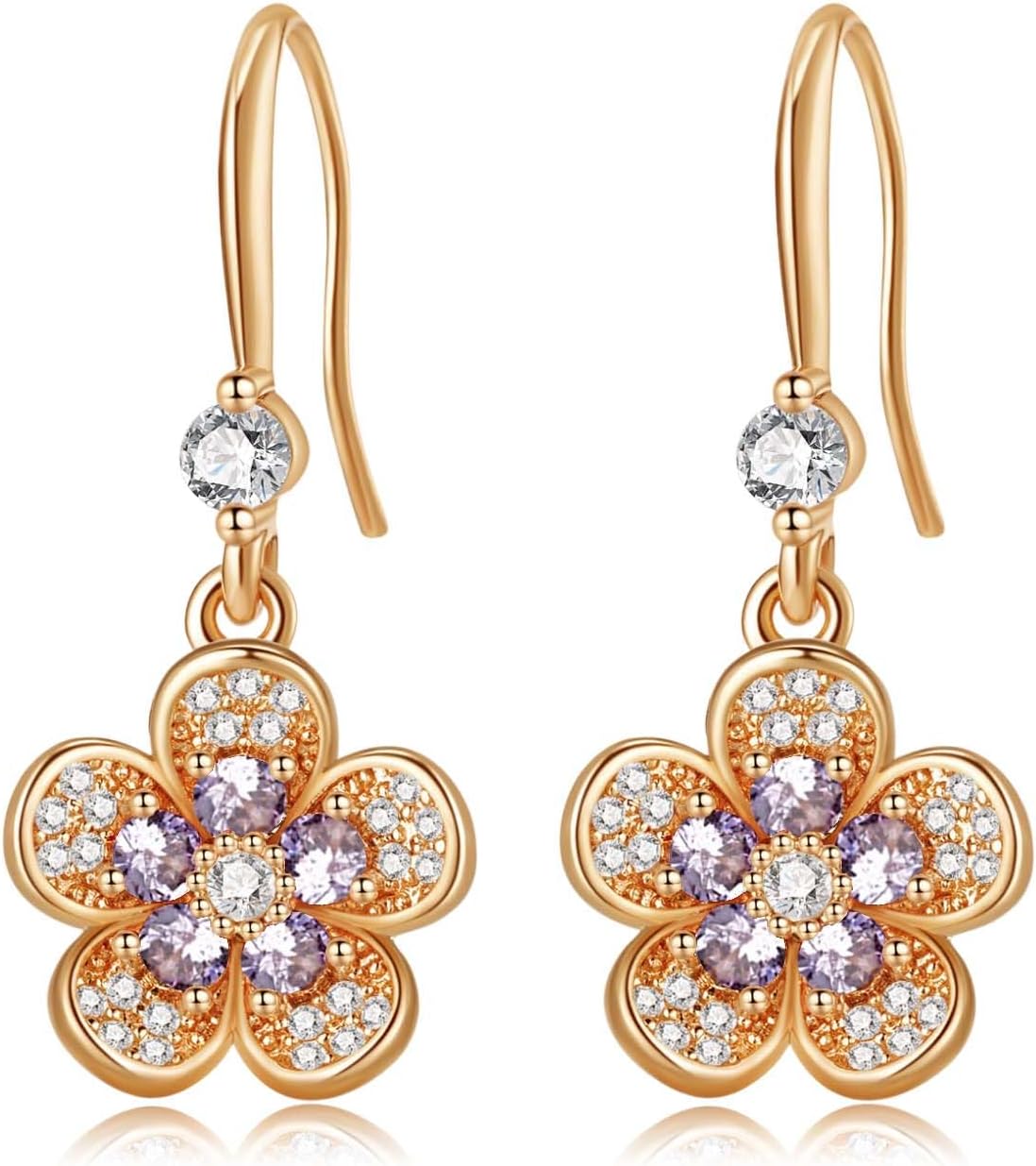 Austrian Crystal Flower Dangle Drop Earrings for Women 14K Gold Plated Hypoallergenic Jewelry