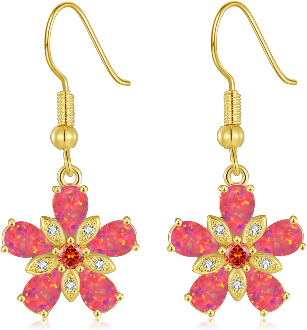CiNily Flower Shaped Dangle Earrings for Women Girls Opal Drop Dangle Earrings 14K White/Gold Plated Dainty Leverback Dangle Earrings Lightweight Statement Jewelry for Wedding Party Birthday