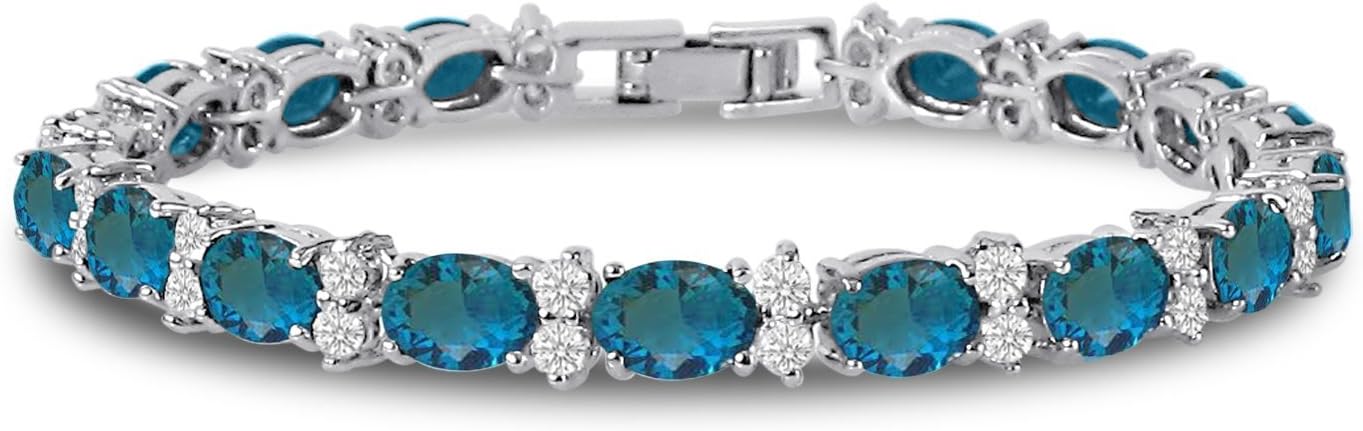 KEZEF Tennis Bracelets For Women - Cubic Zirconia - Oval 7x5mm Gemstones - Round 2.50mm White CZ - Silver Plated Brass - 7 Inch - Multiple Colors Hypoallergenic Bracelets