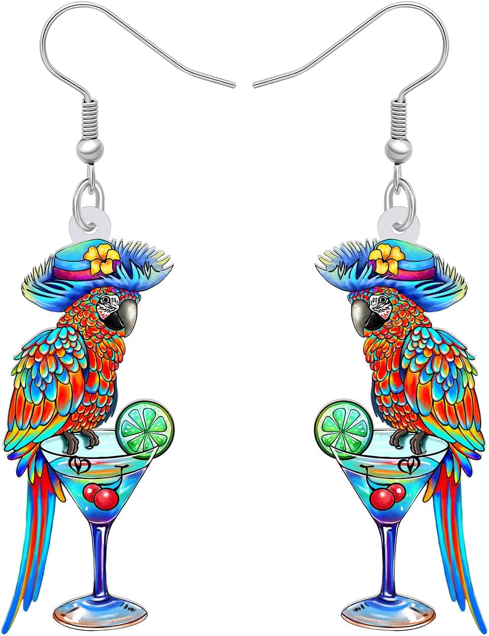 NEWEI Acrylic Cute Macaw Parrot Bird Earrings Dangle For Women Animals Jewelry Gifts Charms Hawaii Accessories