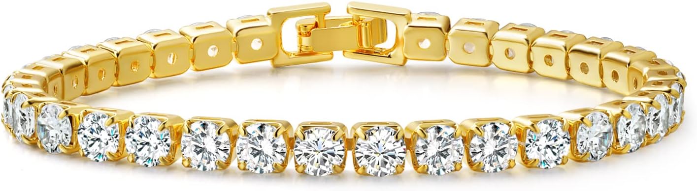 MDFUN 18K Yellow Gold Plated Round Tennis Bracelet for Women – Elegant 5mm Cubic Zirconia Tennis Bracelet – Great Gift for Mom, Wife & Loved Ones Size 6-8.5 inches