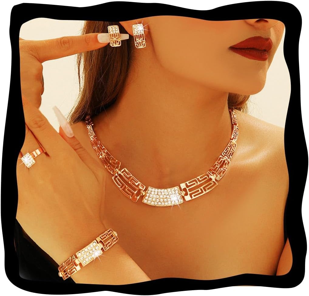 GORAIS Gold Choker Necklaces Jewelry Sets Wedding Rhinestone Earrings Bracelet Ring Set for Women Formal
