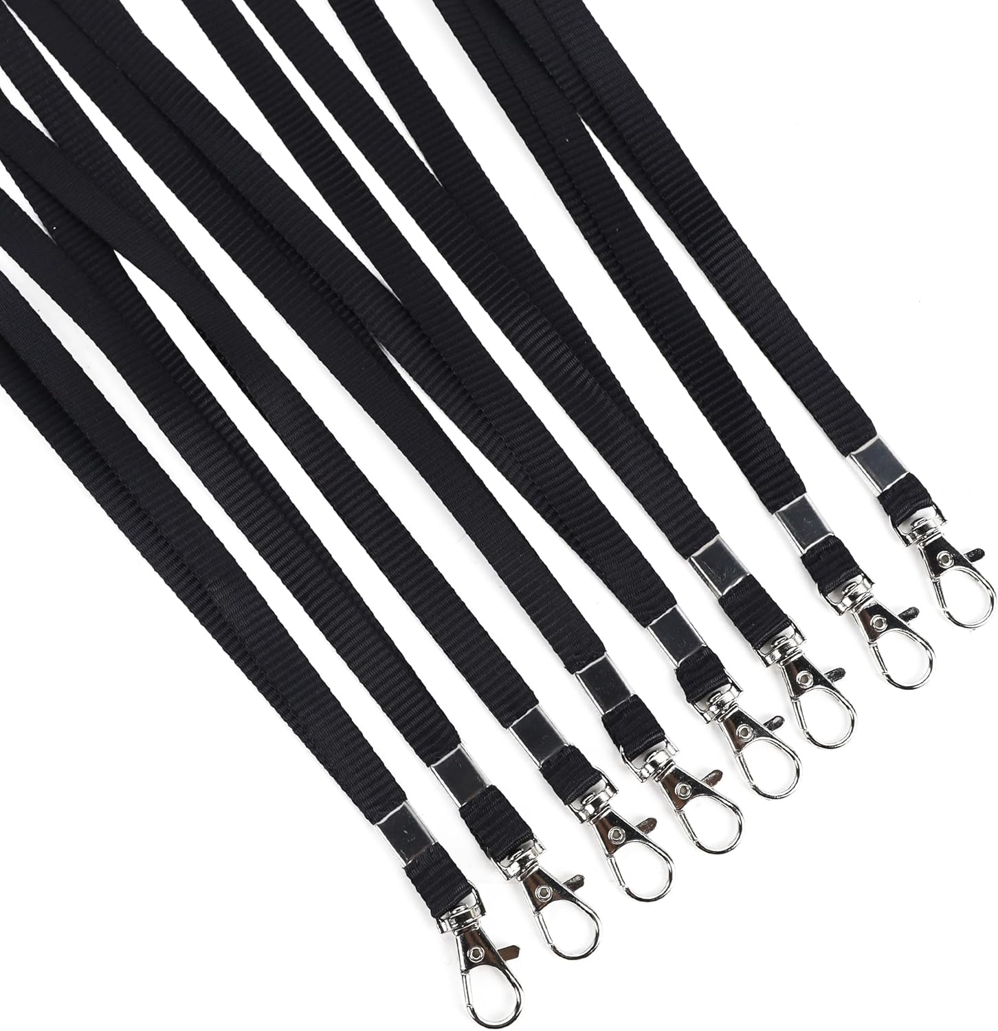 - Proper Size: .4 inches width, 17.3 inches main strap length, 18.5 inches total length. The package includes 8 pack black lanyards equipped with metal swivel hook.