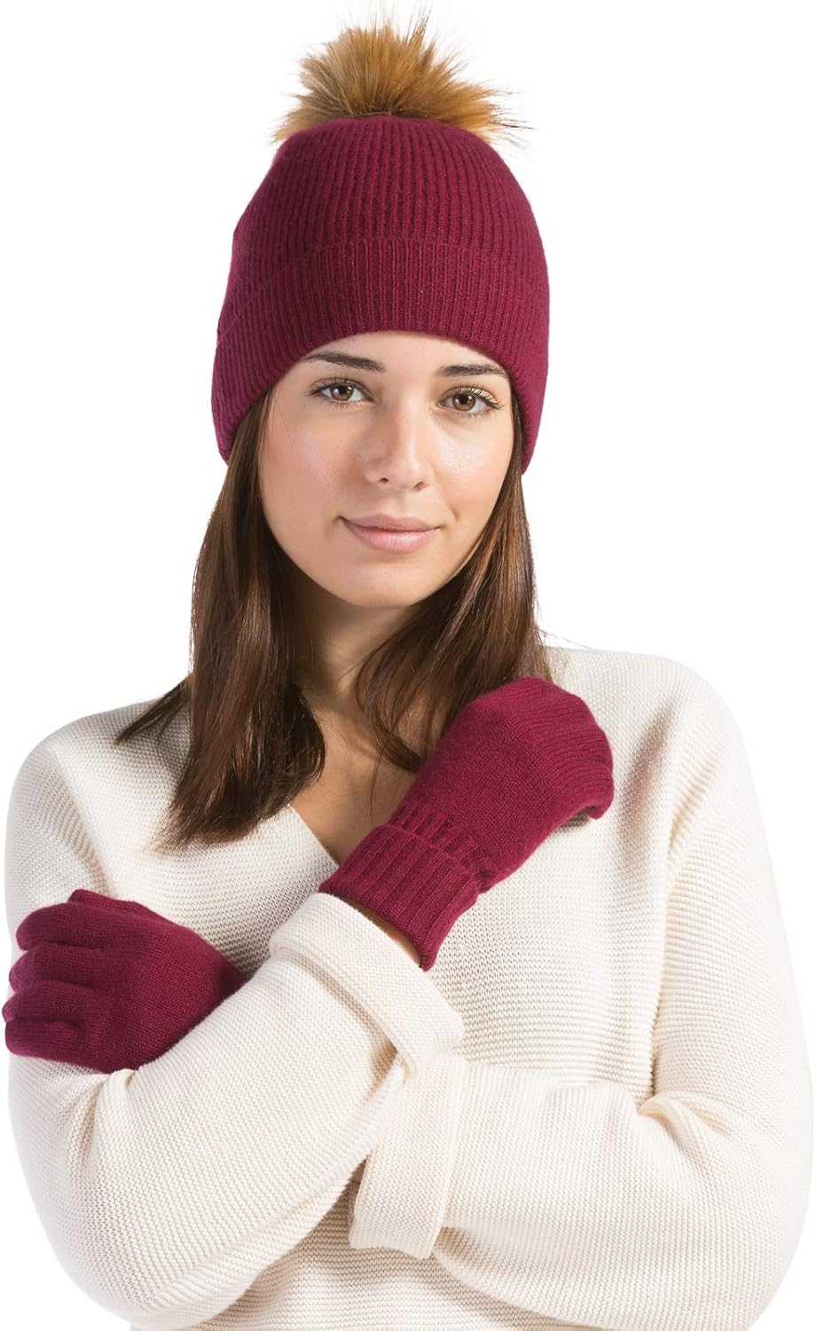 Fishers Finery Women's 100% Cashmere Pom Hat and Glove Set; with Gift Box
