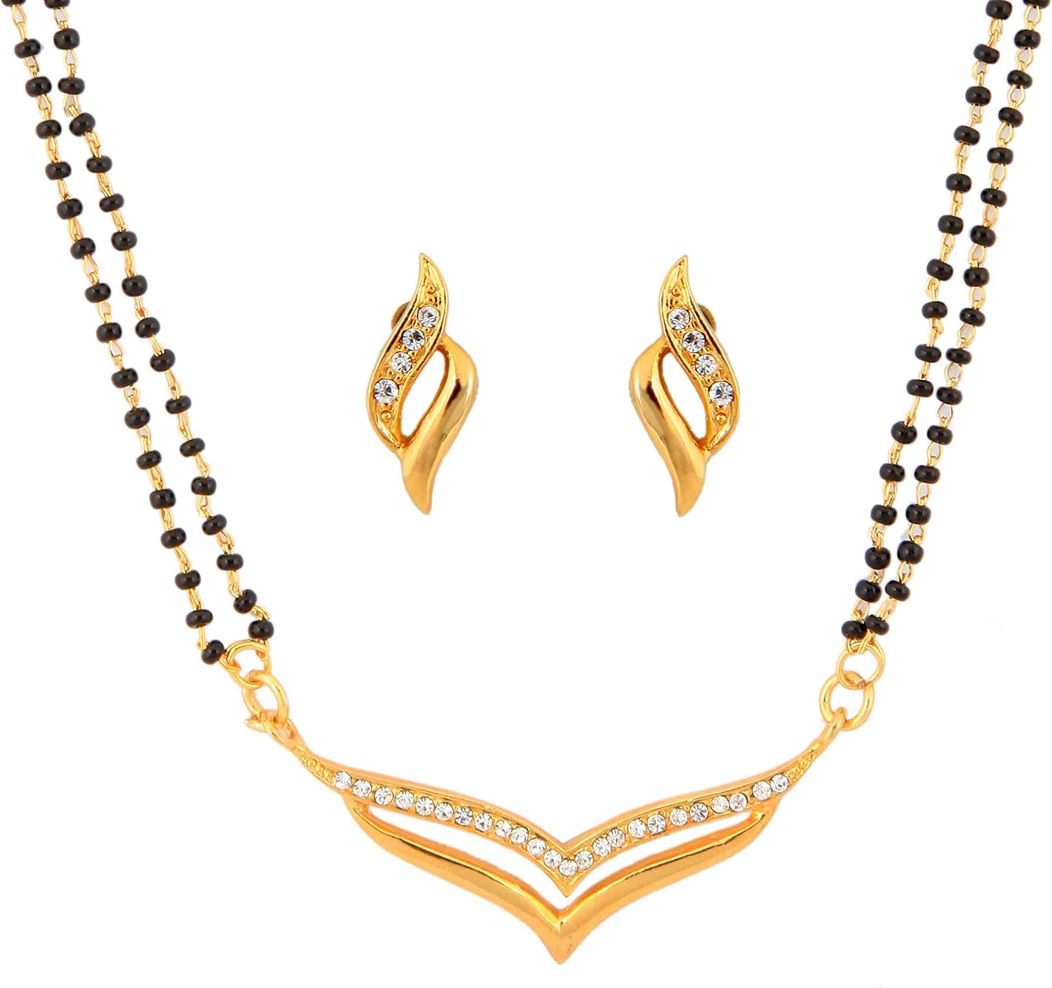 Touchstone Indian Bollywood Style Rhinestone Zirconia CZs Black Beads Symbolic Designer Jewelry Mangalsutra Set in Gold Or White Tone for Women.