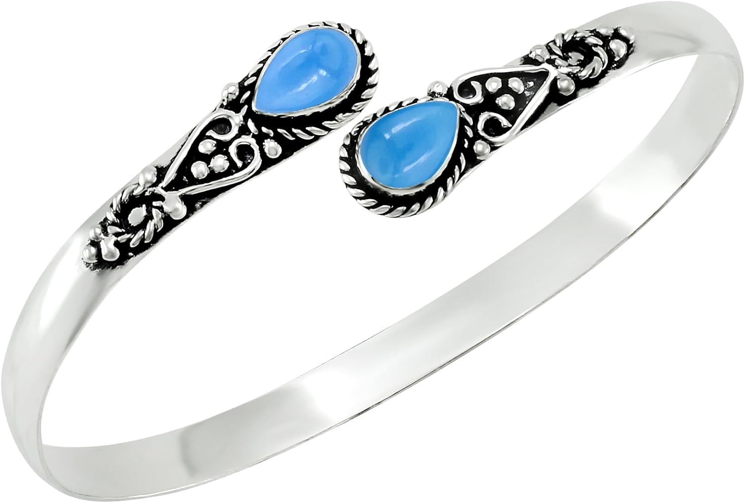 Pear Shape Natural Gemstones Bangle for Women - 925 Sterling Silver Plated Handmade Cuff Bracelet - Birthstone Adjustable Open Bangle Jewelry - Gift for Wedding Anniversaries Valentine's Day Christmas