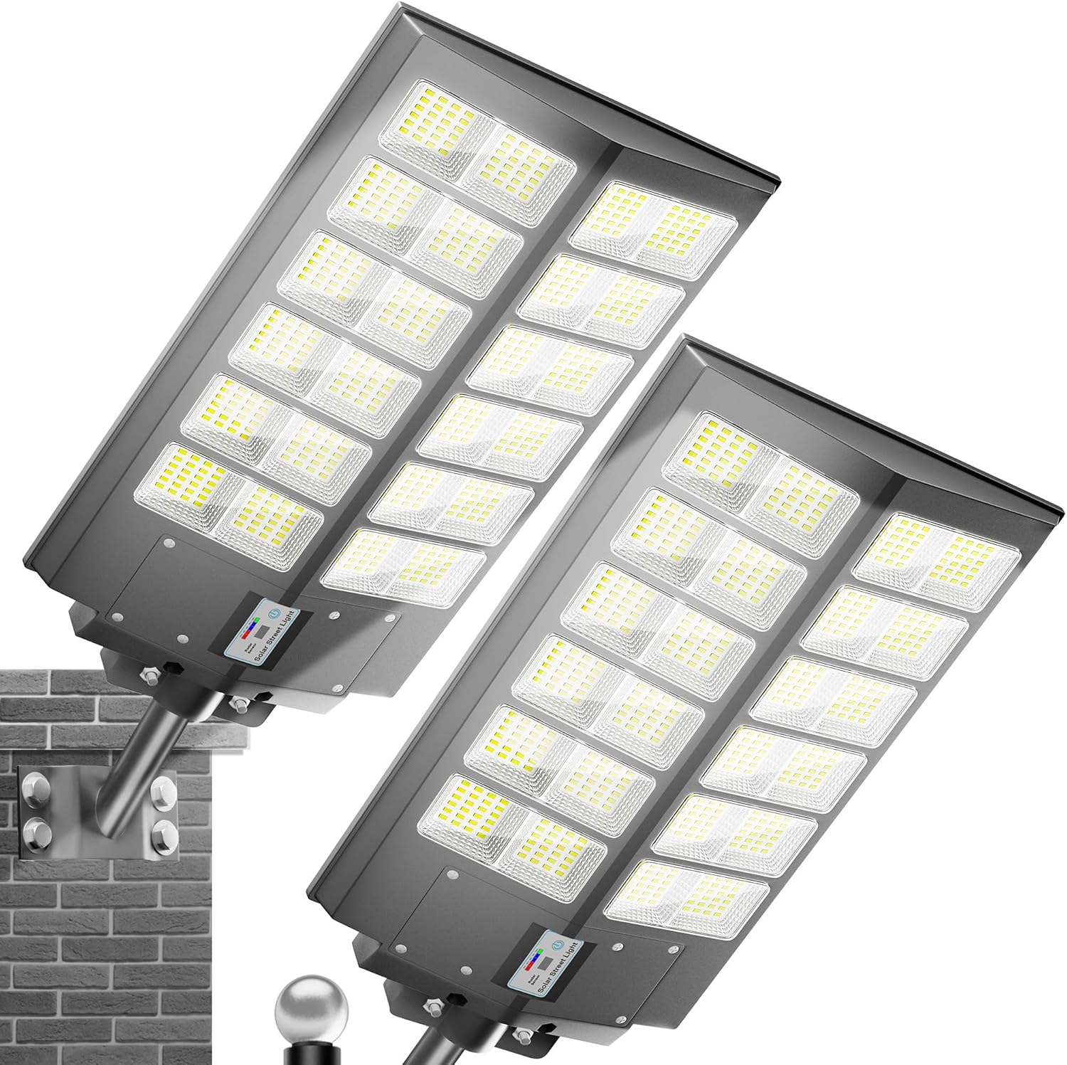 - 0 Electricity Costs&Ultra-Bright 9000W Solar Lights And Wid Lighting Rance: The 9000W Solar Street Light is your cost-effective and eco-friendly lighting solution, now with an astounding 300000 lumens of brilliant illumination.Powered entirely by solar energy, it eliminates the need for electricity.4100 Sq. ft. wide range lighting rance.