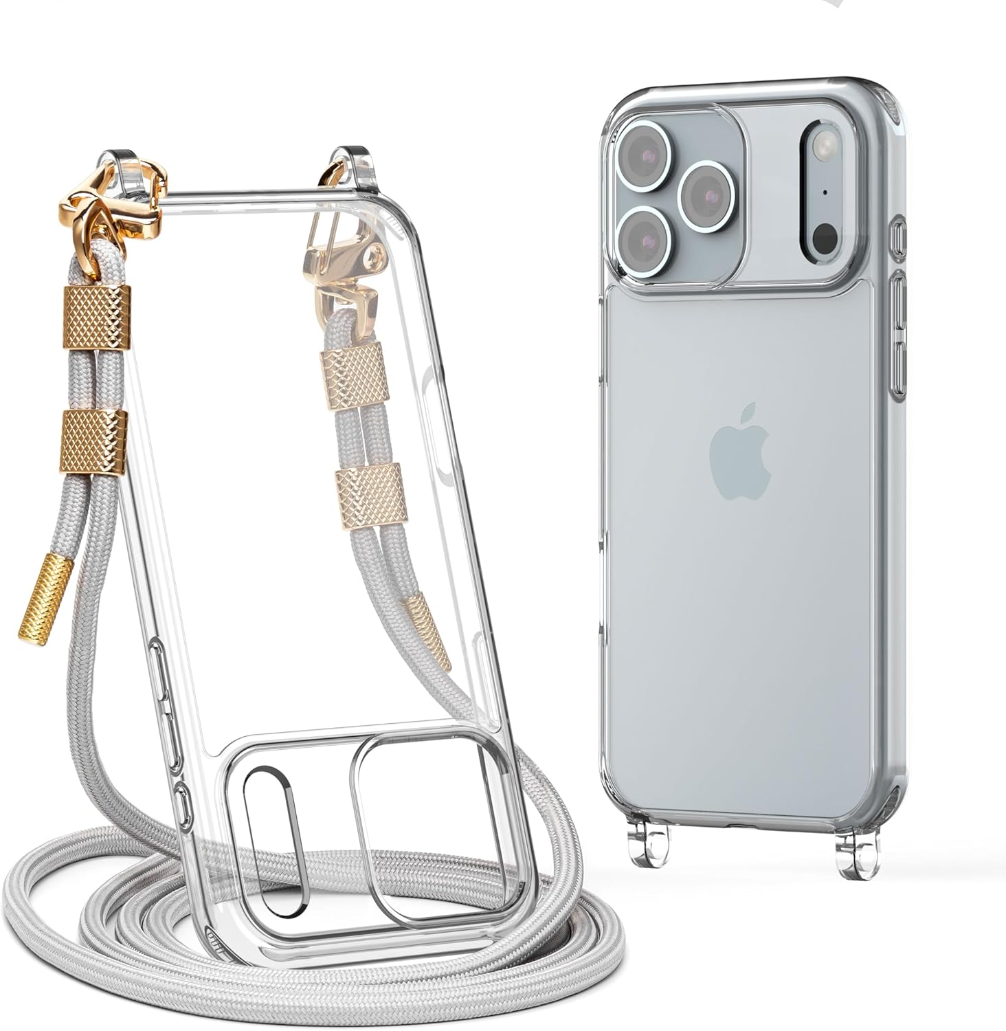 for iPhone 17 Pro Case with Strap, Clear Shockproof Crossbody Phone Cover w/Removable Anti-Theft Adjustable Lanyard for Women, Travel, Shopping, Hiking (6.3", Grey)