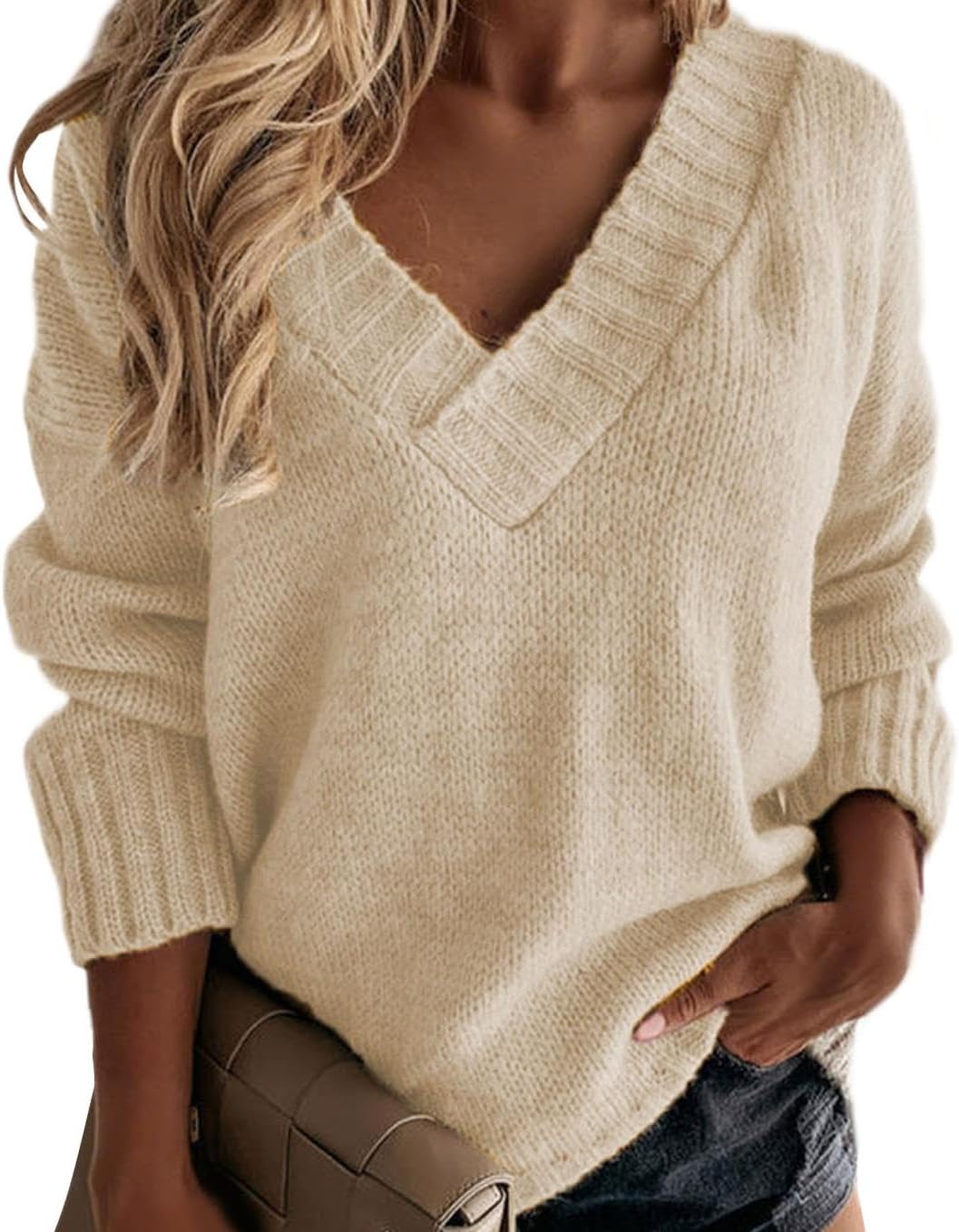 Women's Autumn Sweater 2025 Fall Casual Timeless Long Sleeve Tops V Neck Solid Chunky Pull Over Sweater