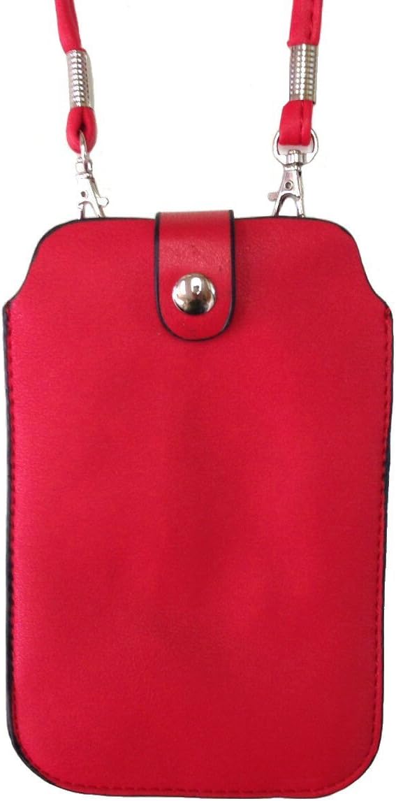 Leather Neck Pouch for iPhone Xs Max, 8 Plus & Other Smartphones (Style 3) - Red