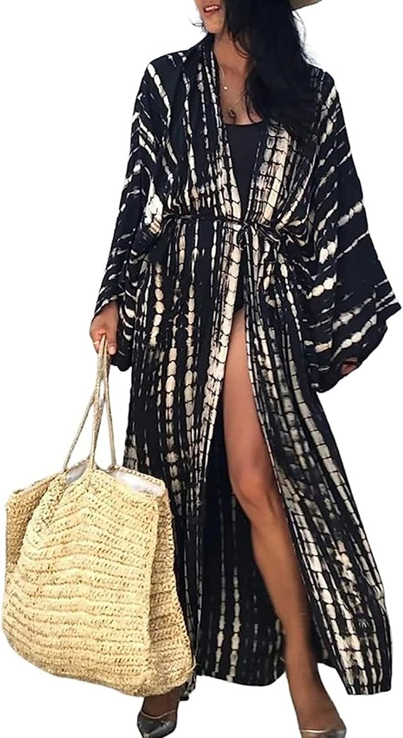 Chunoy Women Loose Long Flowy Open Front Kimono Cardigan Beach Wear Cover Up