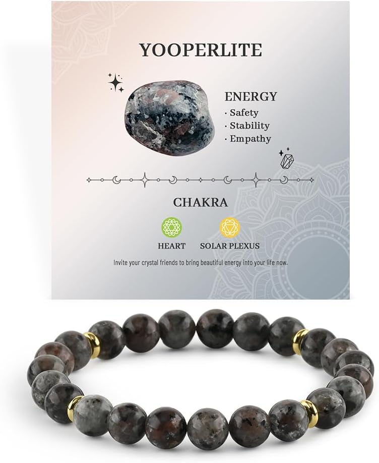 8mm Beaded Bracelet - Calming Natural Healing Crystal Stretch Bracelet for Women and Men - Handmade Semi-Precious Gemstone with Positive Energy