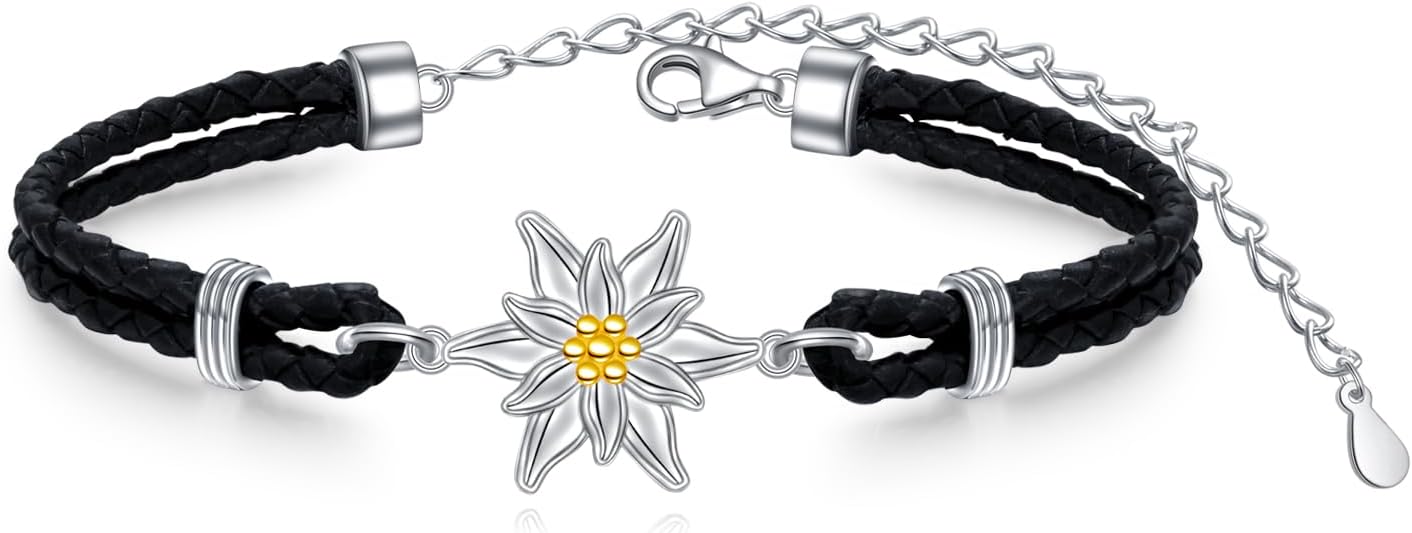 FLYOW 925 Sterling Silver Flower Themed Jewelry Bracelet for Women Birthday Gifts