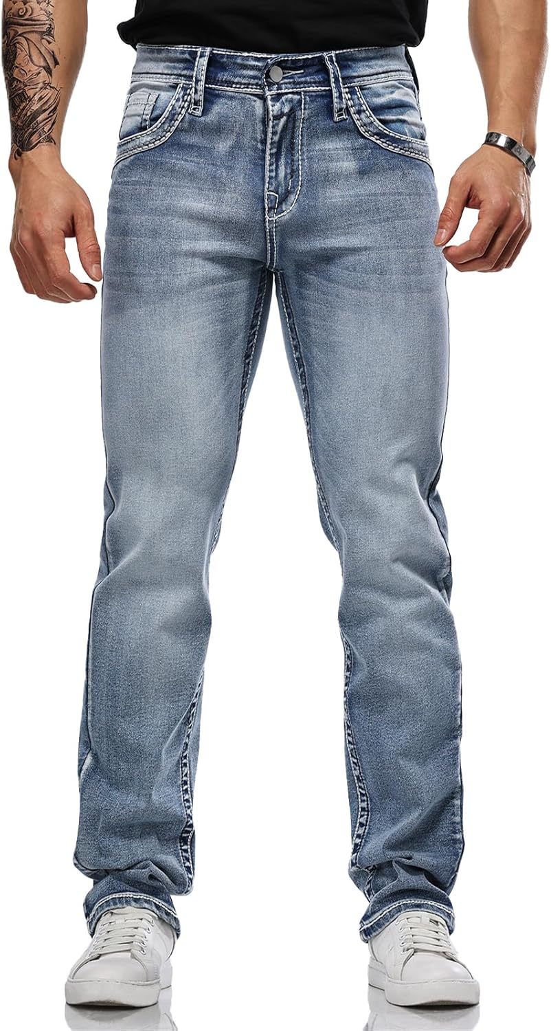 Classic Fit Jeans for Men Embroidered Design All Season Adult Denim Work Pants Everyday Casual Style Men's Pants