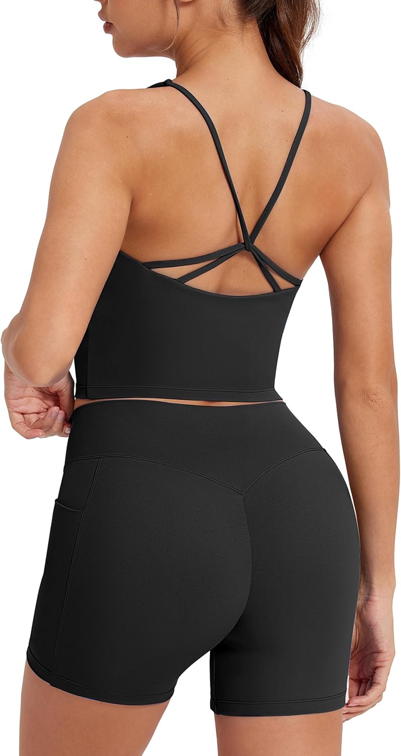 MOOSLOVER Women 2 Piece Workout Sets Longline Sports Bra Tank Tops Tummy Control Gym Shorts Pilates Outfits