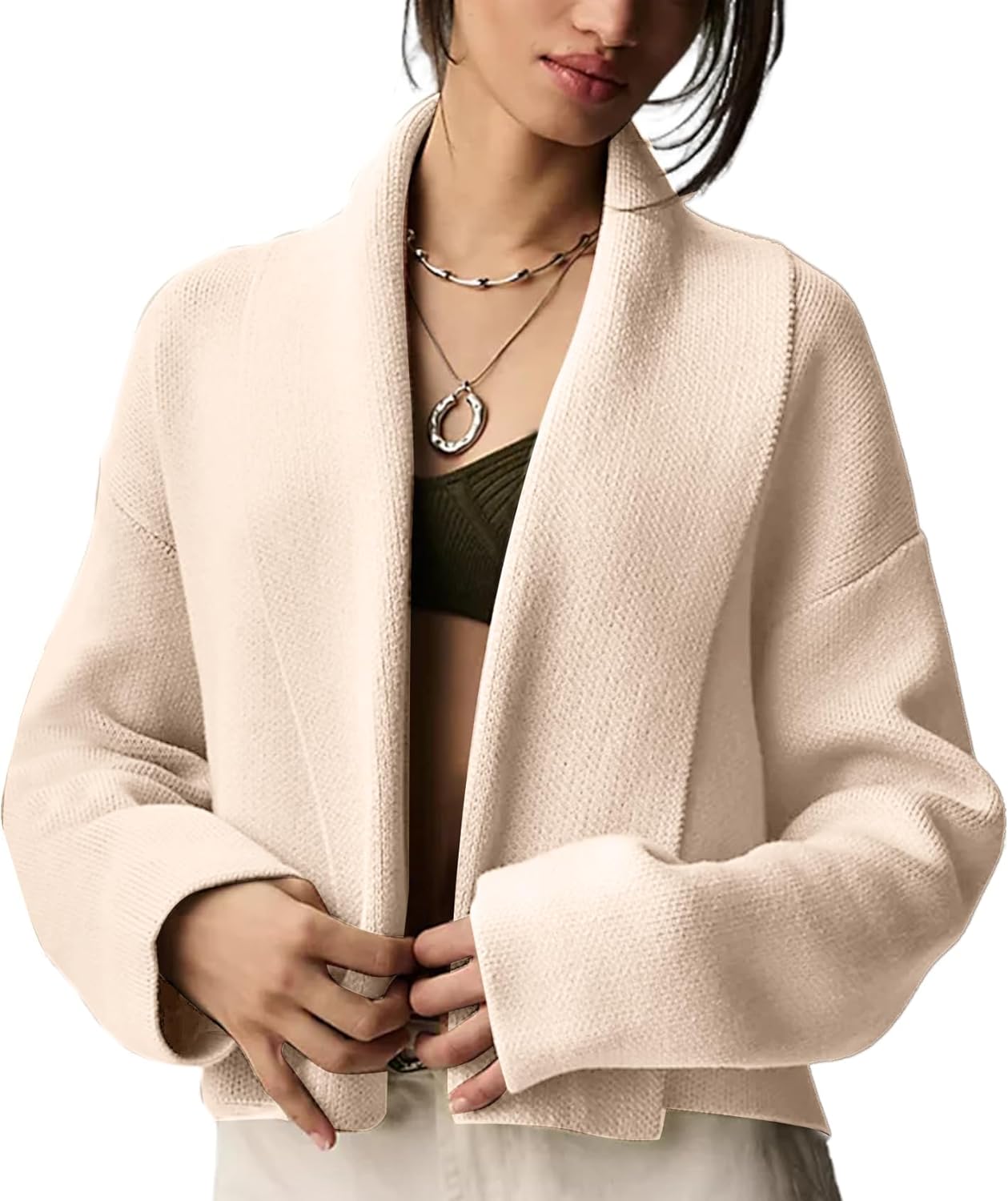 Flygo Women's Cropped Cardigan Sweater Oversized Shawl Lapel 2025 Fall Fashion Open Front Sweater Jacket Knit Outwear