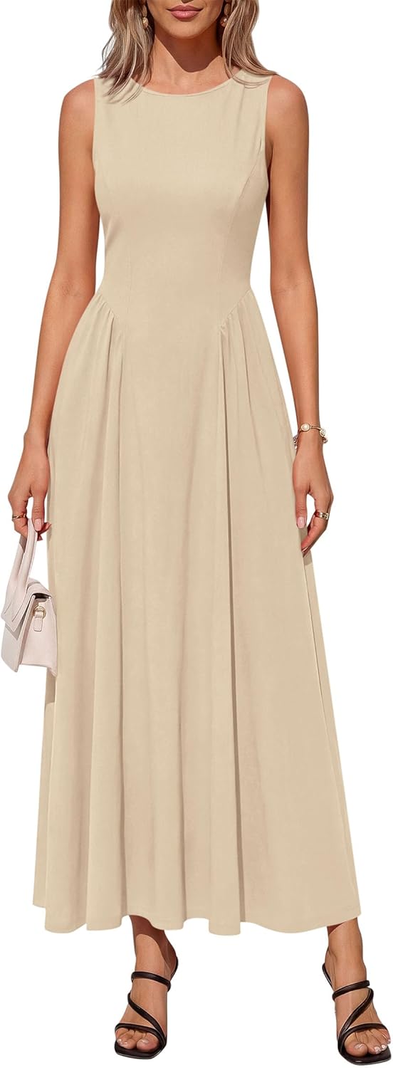 KIRUNDO Summer Semi Formal Wedding Guest Sleeveless Maxi Dress for Women 2026 Elegant Boat Neck Flowy A line Long Sundress