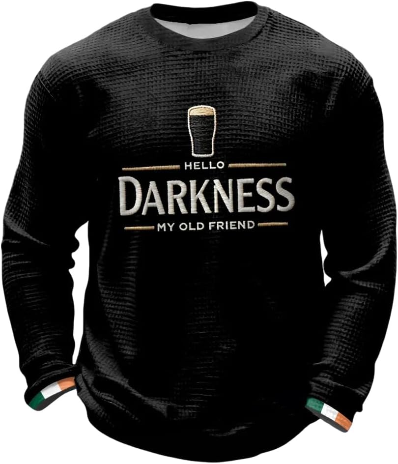 Men's Hello Darkness My Old Friend Waffle Long Sleeve T-Shirt St. Patrick's Day Shirt