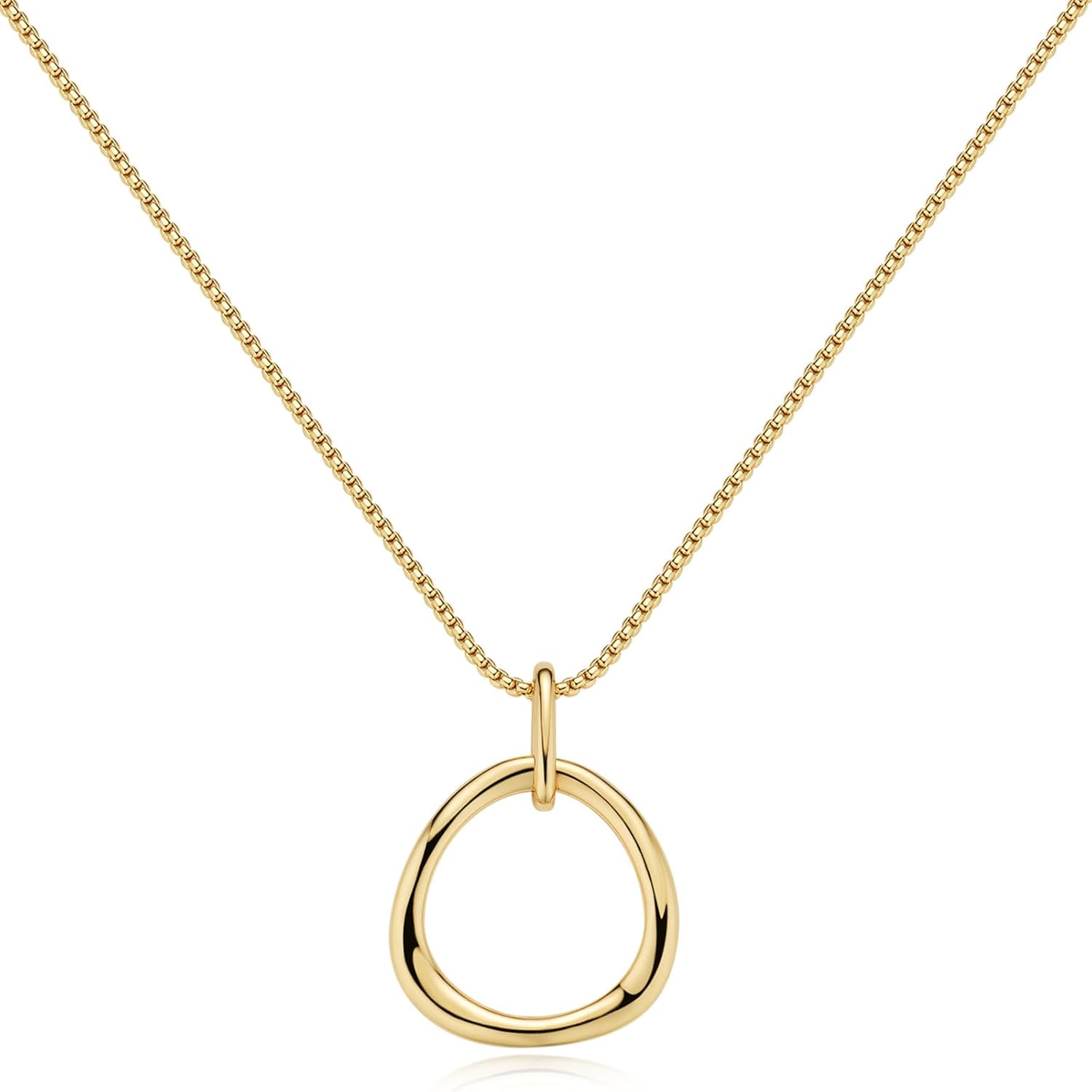 COBI Pendant Necklaces for Women, 18K Gold & Rhodium Plated Four Leaf Clover with CZ, Open Circle Karma Eternity Pendant, Link Chain Necklace with T-Bar Charm, Adjustable 16"+2" Dainty Jewelry Gift