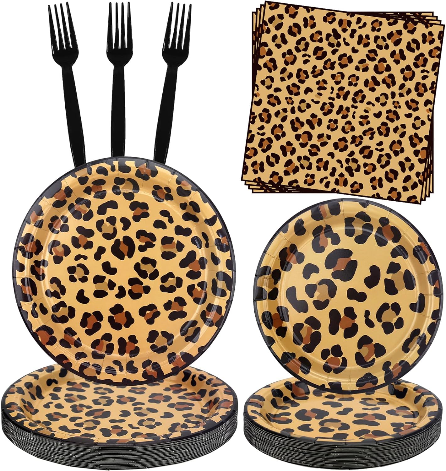 Cheetah Birthday Party Decoration, Leopard Print Party Plates Napkins, Forks, Tableware Sets for Jungle Safari Print Party Supplies, Baby Shower, Serves 25(Leopard)