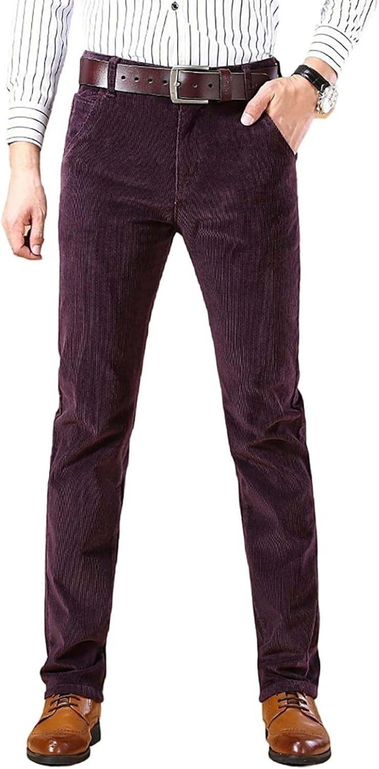 utcoco Men's Cotton Slim Fit Corduroy Pant Straight-Leg Corduroy Pant for Men
