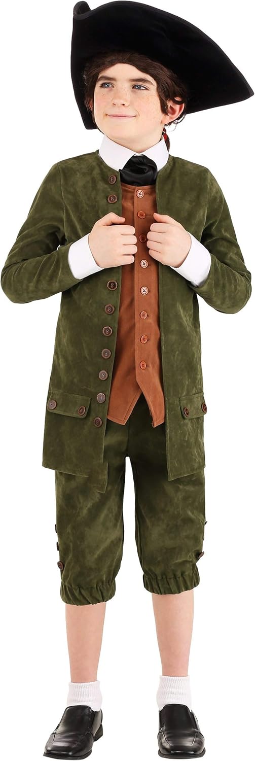 Boys Colonial Child Costume With Jacket, Pants, Scarf, & Hat | Play Pretend And Dress Up Clothes For Halloween