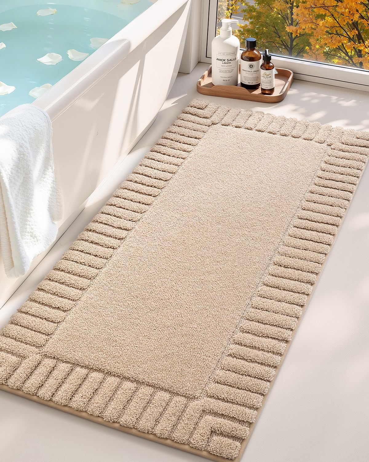 Color&Geometry Long Khaki Bathroom Runner Rug, 24"x43" Absorbent Bath Rugs Non Slip Washable, Soft Bath Mats for Bathroom Floor, Shower, Bathtub, Laundry