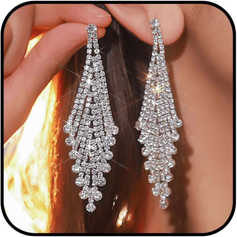 Rhinestone Earrings Prom Earrings for Women Sparkly Long Tassel Chandelier Drop Statement Earring Jewerly Gifts Wedding Party Prom Dresses Accessories