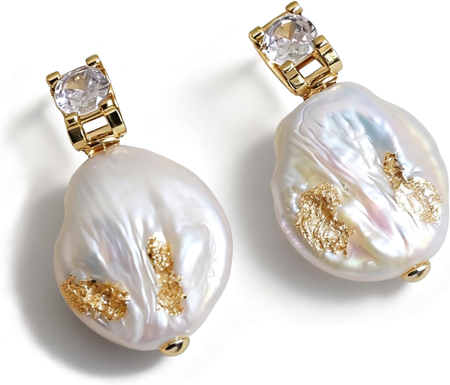 Drop Dangle Earrings Freshwater Cultured Baroque Pearls in White and Pink|18K Gold Plated|925 Sterling Silver|Hypoallergenic Jewelry Gift for Women