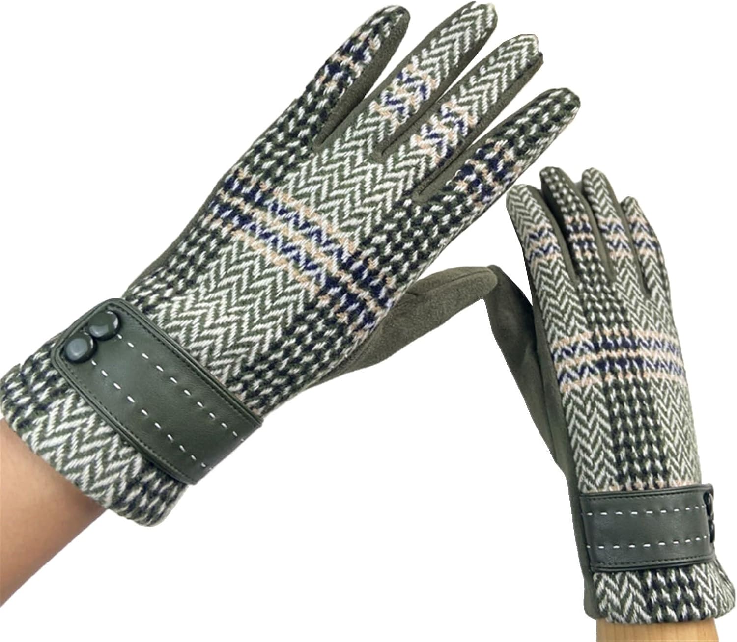 Women Plaid Striped Winter Gloves Touch Screen Fleece Thick Warm Mittens Cold Weather Driving Gloves