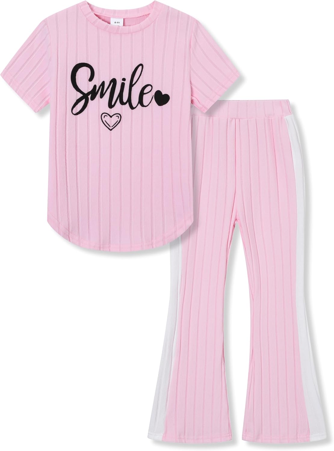 Girls 2PCS Outfits Short Sleeve Smile Tops & Flared Pants Summer Trendy Kids Clothes Teen Girls Clothing Set 8-13Y