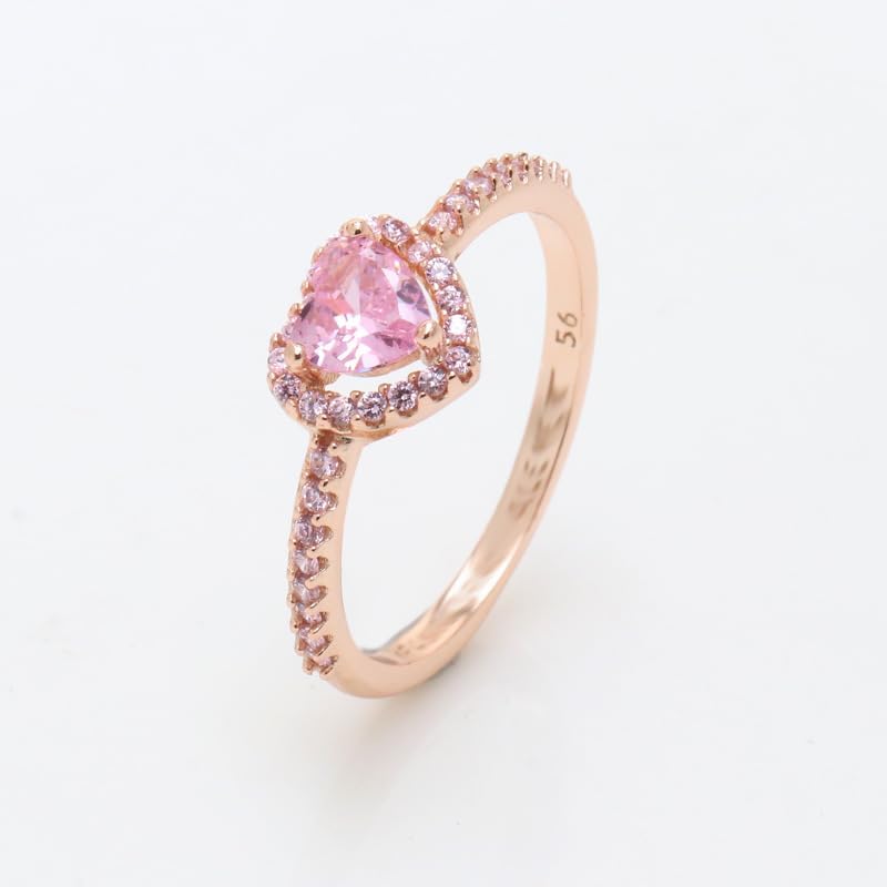 925 Sterling Silver Women's Engagement Ring Heart Cut Cubic Zirconia Wedding Commitment Ring Heart Set with Diamond Rose Gold Pink Diamond Ring for Women Gift 9