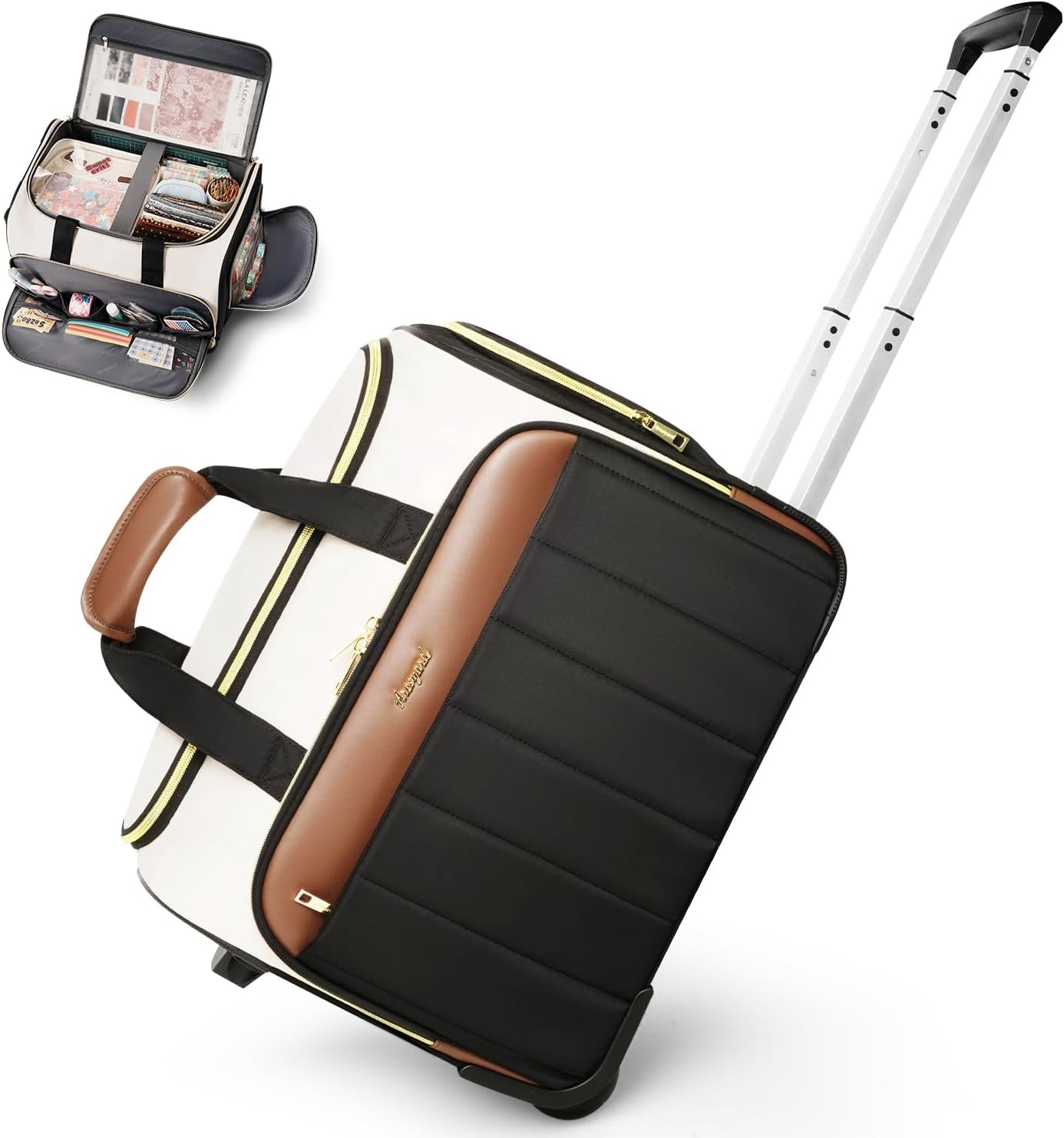 Rolling Craft Bag with Wheels, All-in-One Rolling Scrapbook Tote No Installation Required, Rolling Teacher Bag Fits 16” Laptop, Art bags for supplies for DIY, Sewing, Scrapbooking Supplies,Beige Brown
