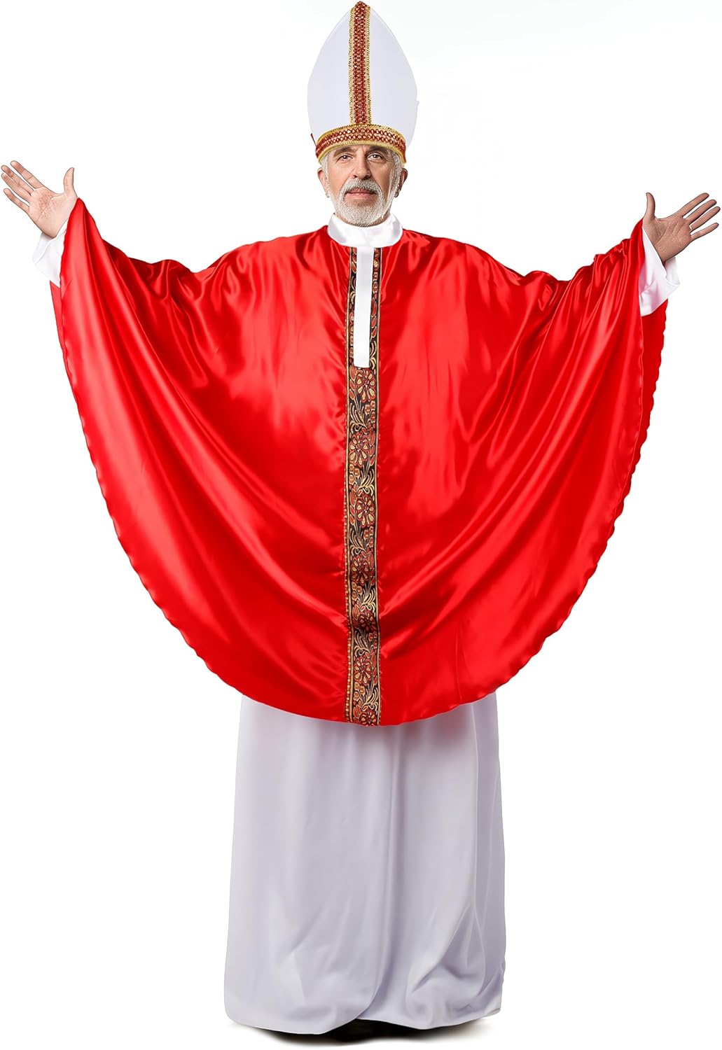 HOMELEX Pope Costume Adult Men Halloween Bishop Biblical Apostle Catholic Priest Red Papal Poncho outfit