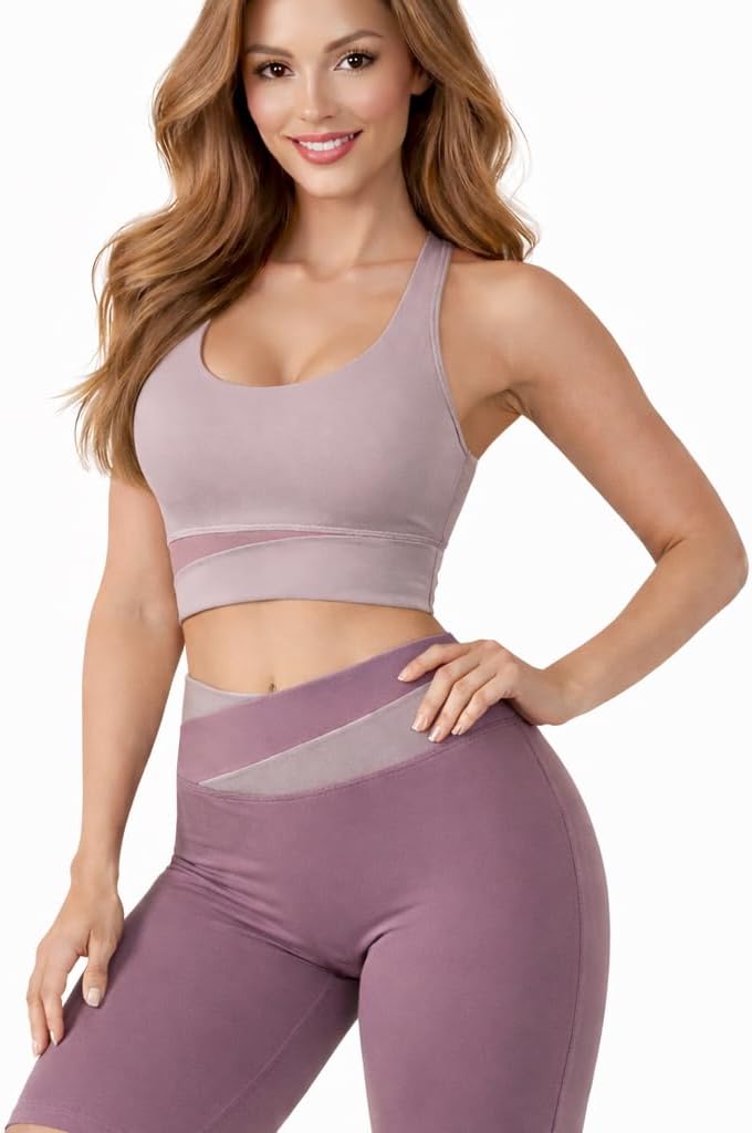Women's 2-Piece Workout Set, Seamless Racerback Sports Bra and Biker Shorts, Polyester Spandex