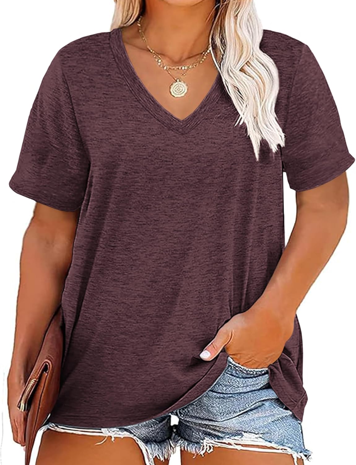 Kancystore Women's Plus Size V Neck T Shirts Short Sleeve Tops Casual Summer Tshirts Loose Fit Tees XL-5X