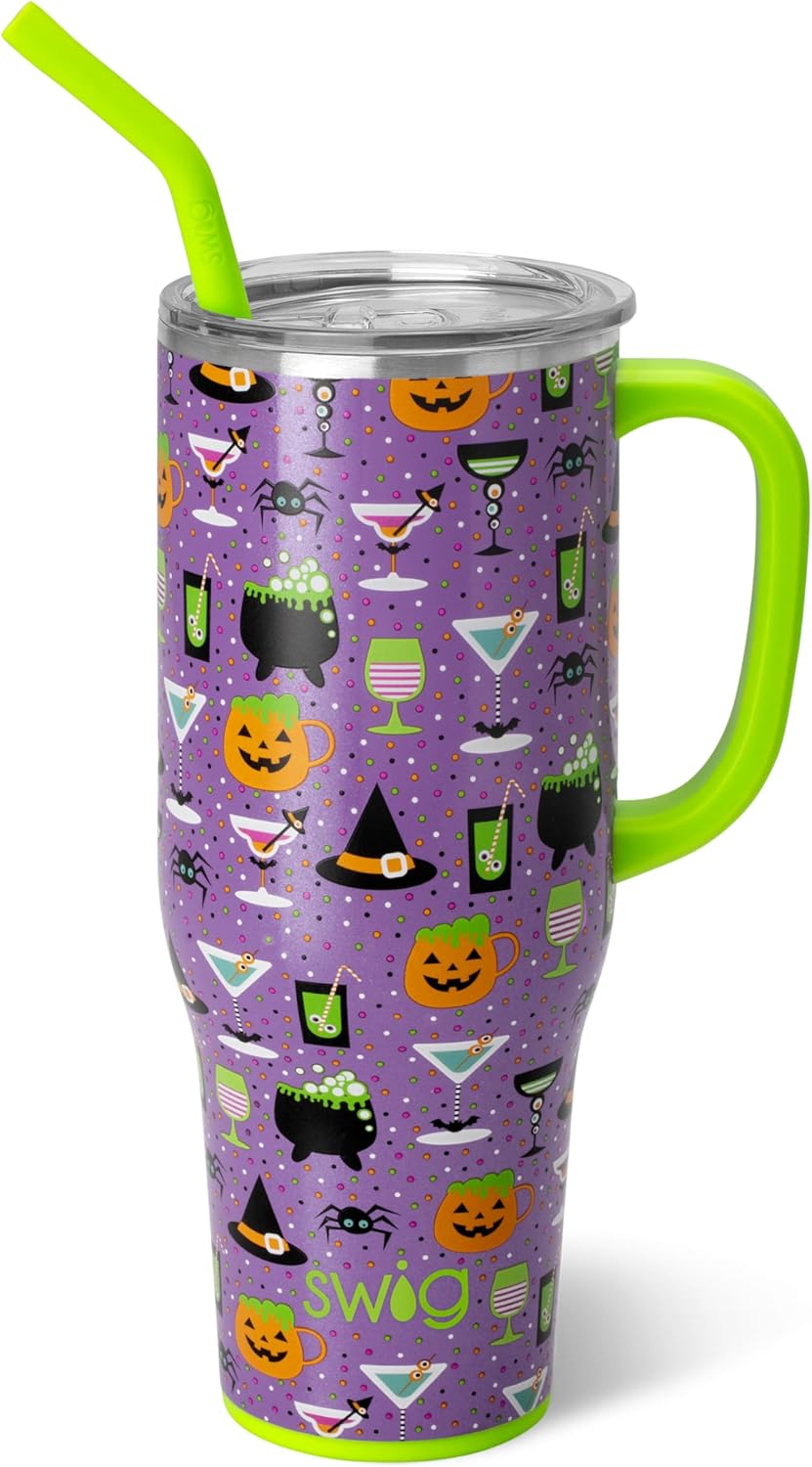Swig Life 40oz Mega Mug, 40 oz Tumbler with Handle and Straw, Cup Holder Friendly, Dishwasher Safe, Extra Large Insulated Tumbler, Stainless Steel (Witches Brew)