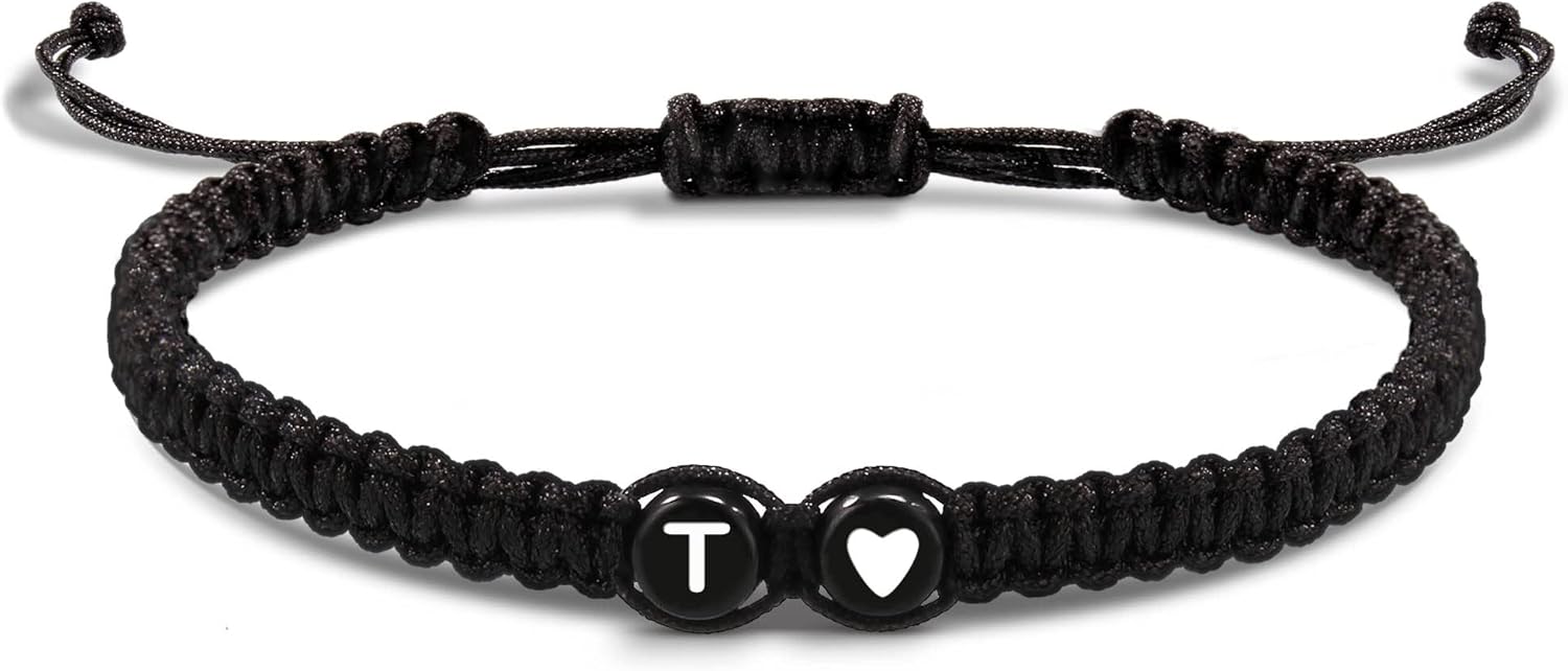 Valentines Day Gifts for Him Boyfriend, Initial Bracelets for Women Teen Valentines Gifts for Her Trendy Stuff Best Friend Birthday Gift Graduation Adjustable Letter A-Z Braided Bracelets Heart Link Sister Daughter Mother's Day Mom Female Christmas Jewelry