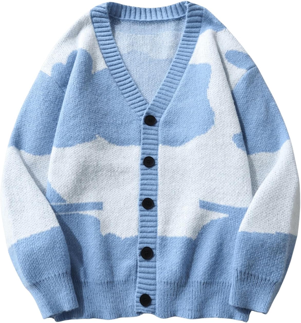 SHENHE Men's Color Block Cardigan Button Down Open Front Long Sleeve V Neck Sweater Coat