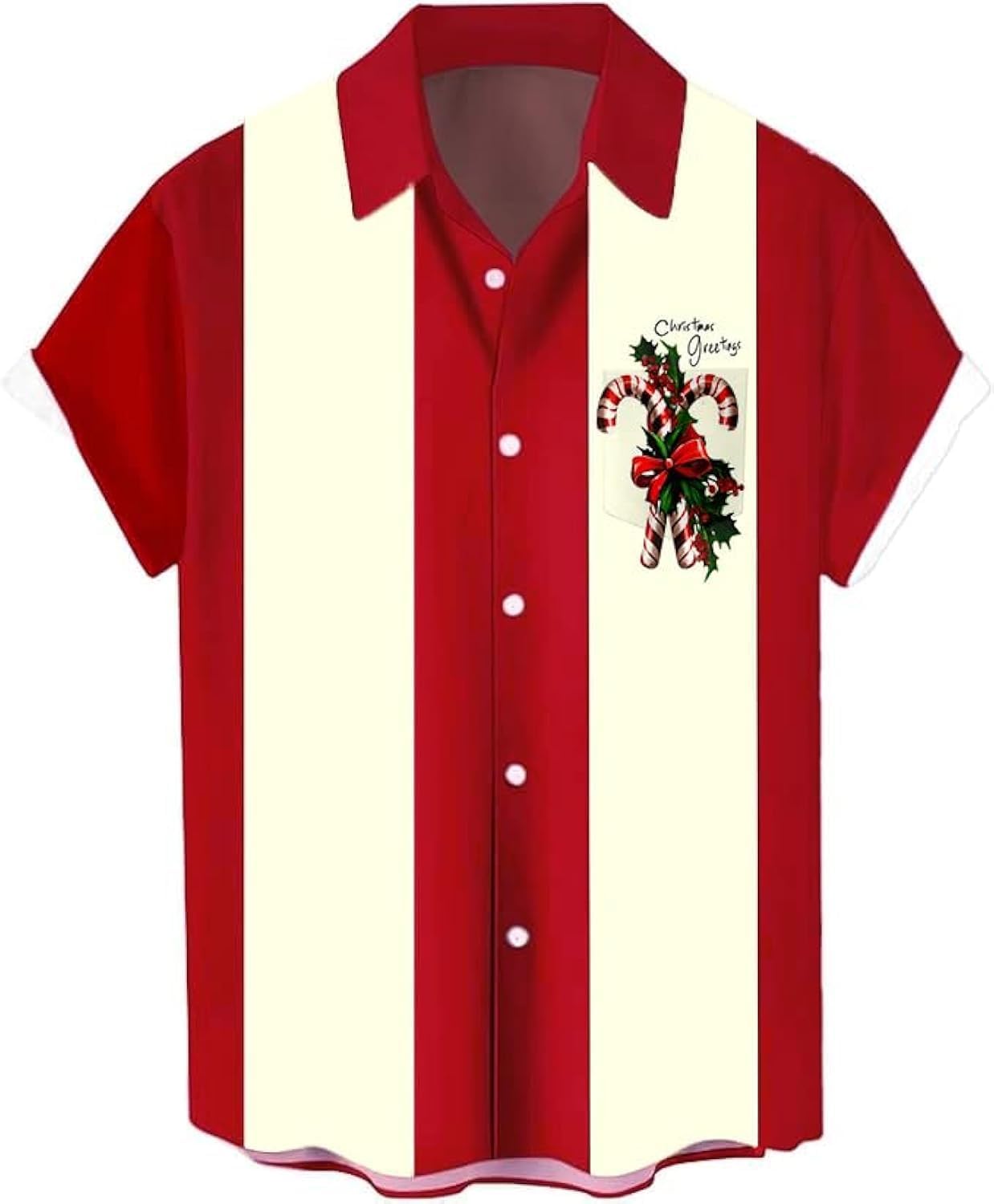 Men's Funny Christmas Shirts Short Sleeve Button Up Vacation Bowling Shirt (S-6XL)