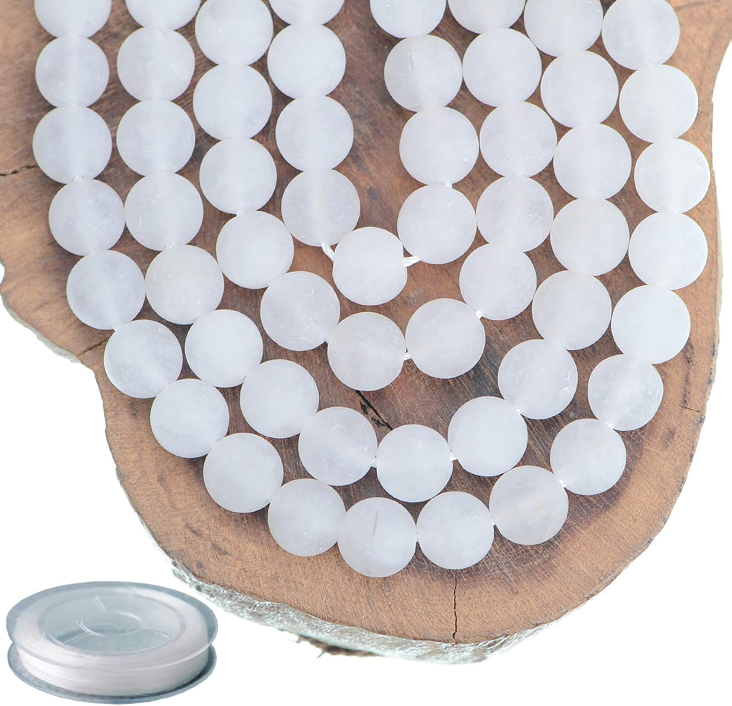 8mm Natural Matte White Jade Round Gemstone Frosted 100Pcs Bulk Loose Beads for Jewelry Making Bracelet with Stretch Beading Cord LPBeads