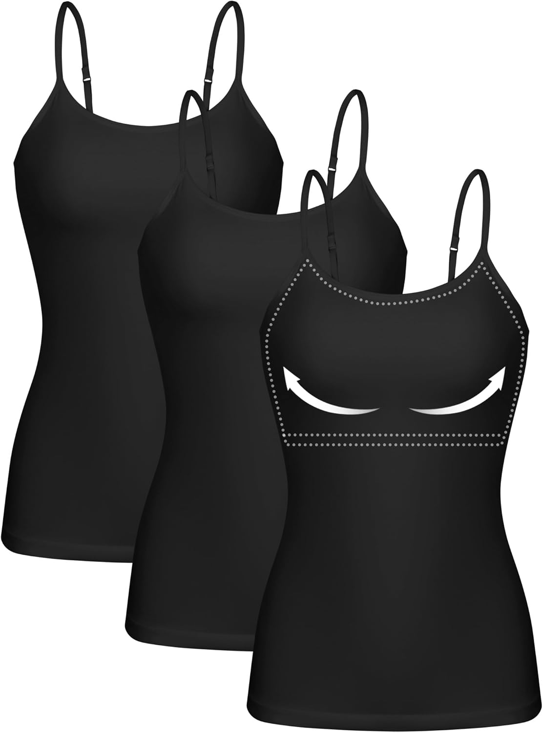 ATTRACO Women 3 Pack Cotton Camisoles wtih Shelf Bra Adjustable Spaghetti Strap Tank Tops