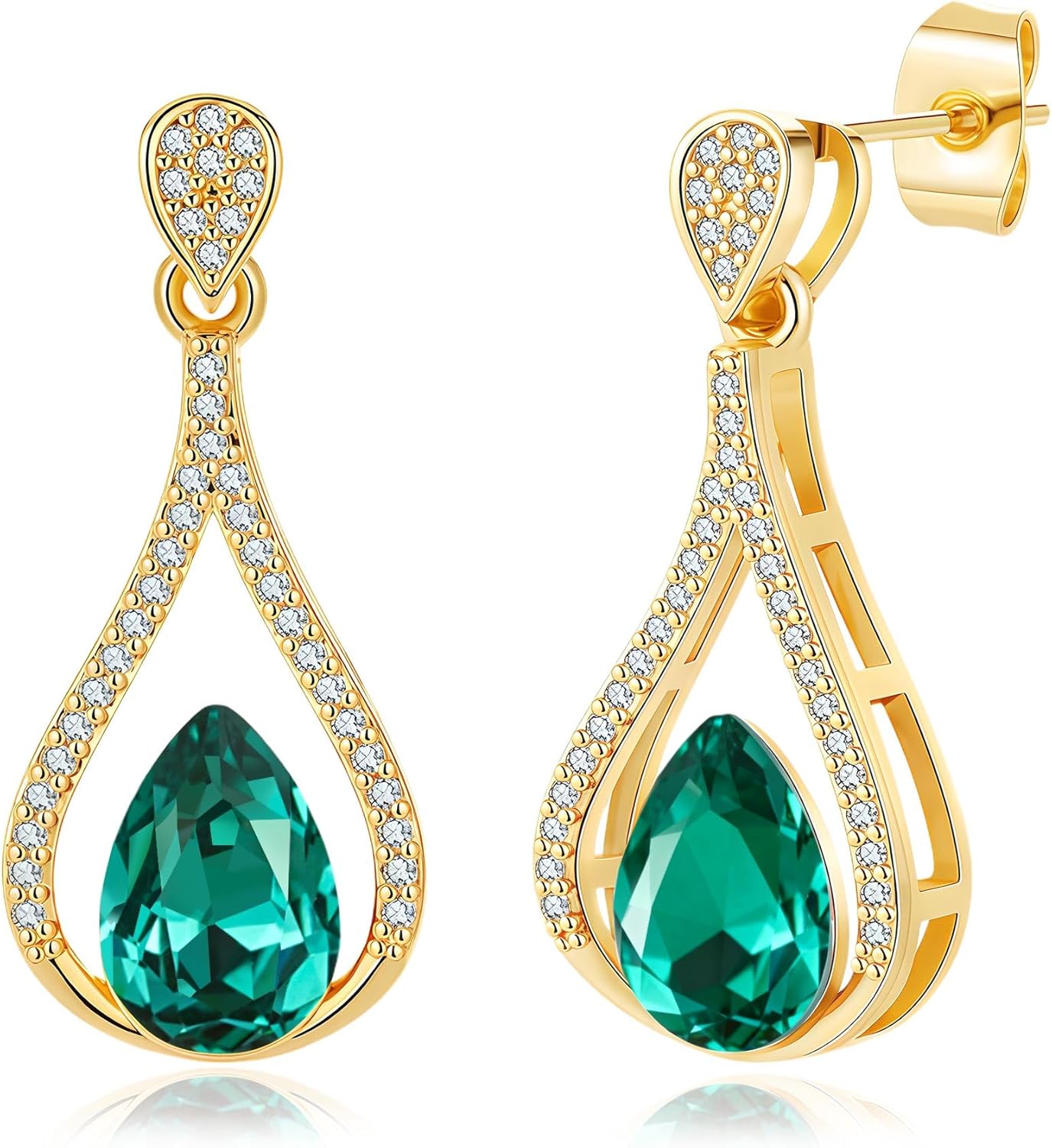Austrian Crystal Halo Teardrop Hollow Drop Stud Earrings for Women 14K Rose Gold Plated Hypoallergenic Jewelry