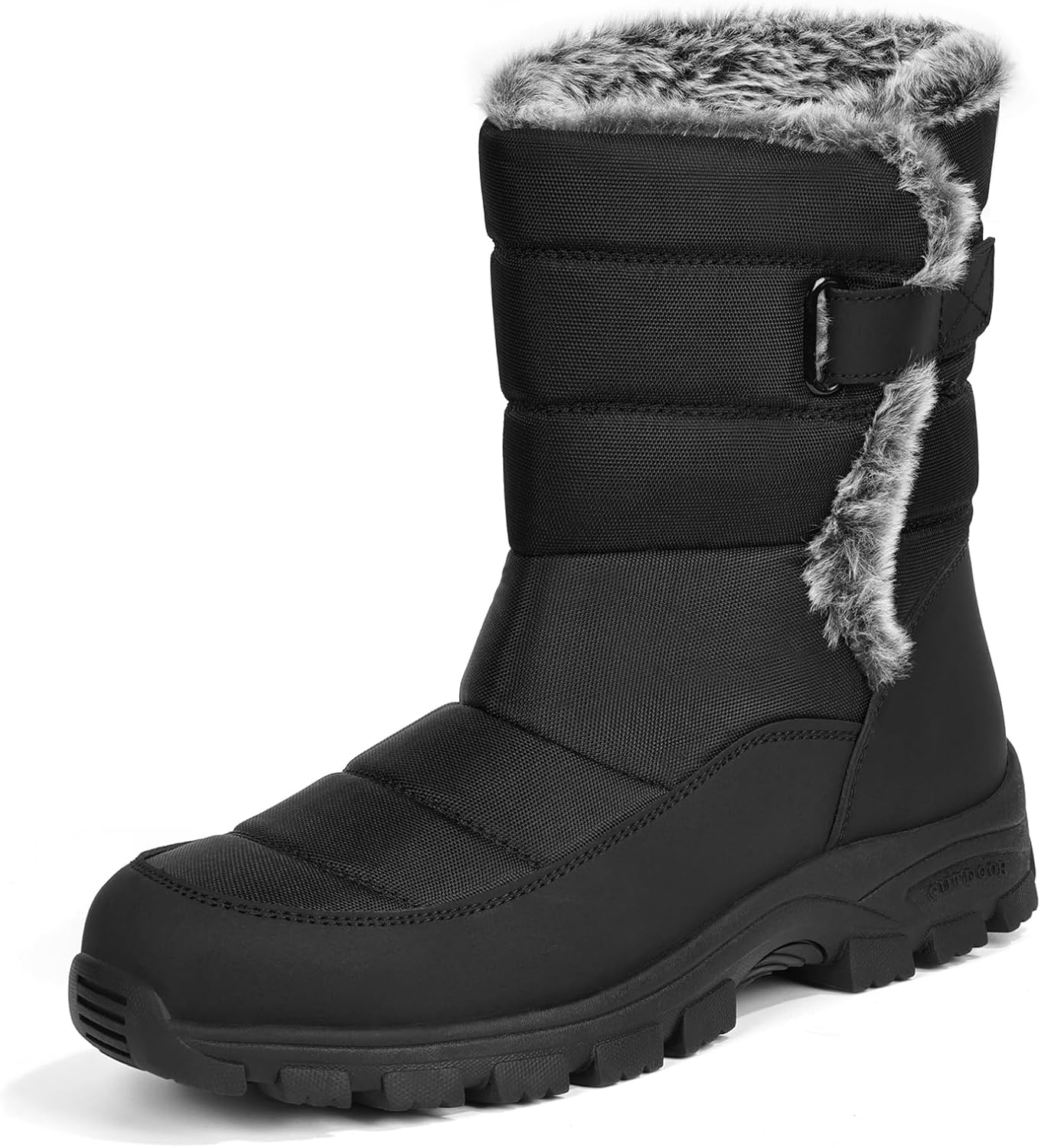 ANGRYRAM Winter Steel Toe Boots for Women Non Slip Warm Insulated Snow Boots Faux Fur Comfortable Mid Calf Safety Toe Furry Snow Shoes for Industry Construction Outdoor Winter